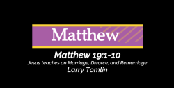 Matthew 19:1-10 September 15, 2025 Larry Tomlin Matthew Bible Study Video SHARE ON Twitter Facebook Buffer LinkedIn Pin It Leave a Reply Cancel replyYour email address will not be published. Required fields are marked *Comment * Name * Email * Website Δ Continue Reading Romans 8:12-24 Deuteronomy 30